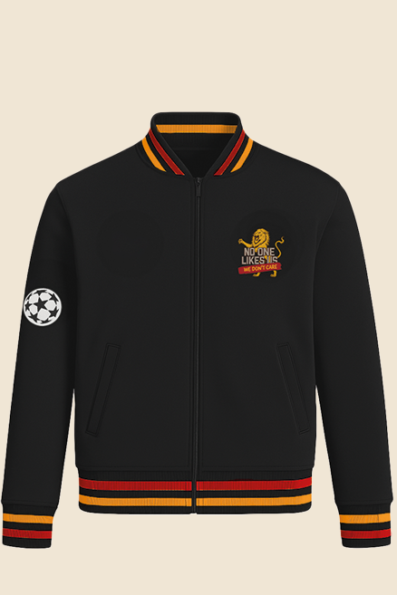 Sokak stilini ve tribün kültürünü birleştiren “No One Likes Us, We Don’t Care” ceket, cesur detaylarıyla fark yaratıyor. Siyah zemin üzerine sarı-kırmızı ribana şeritler, şampiyonlar ligi kol patch’i ve göğüste aslan logosu ile tamamlanan bu tasarım, sahada da sokakta da aynı kararlılığı taşıyor.